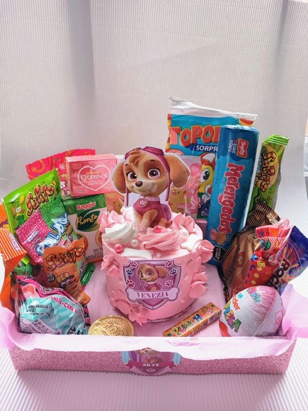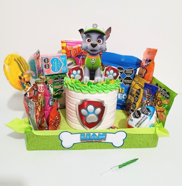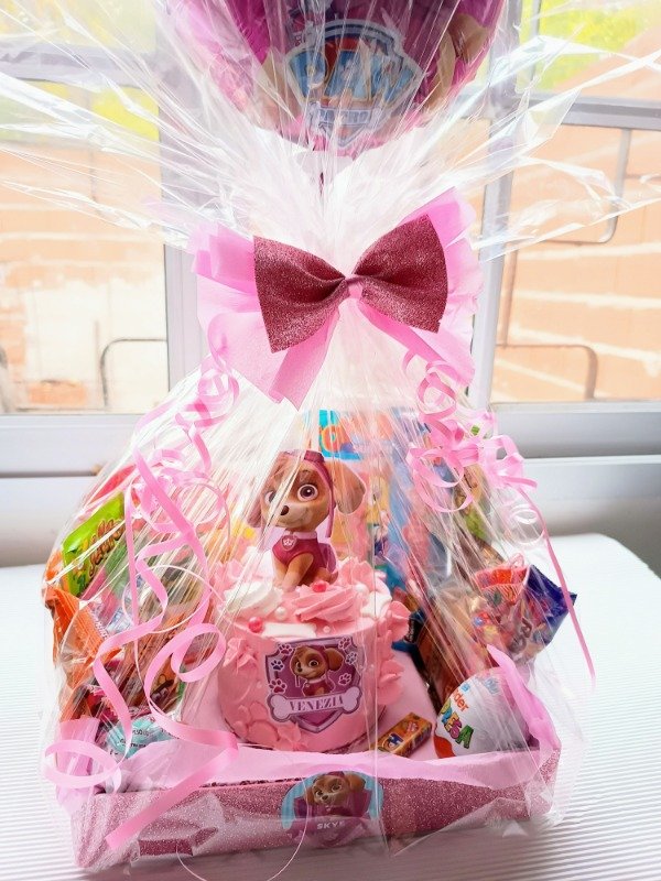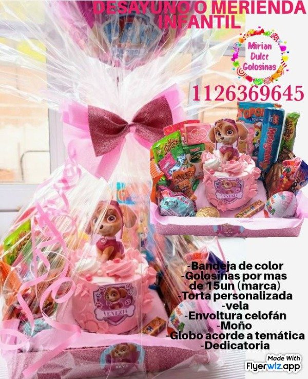 Hacemos desayunos/meriendas para niños, que es la tortita personalizada + las golosinas que ves + vela + envoltura en celofán con moño, tarjeta y globo acordé a la temática.todos son productos de marca ya reconocida.Retiran en mi domicilio o Se hacen envios!!!